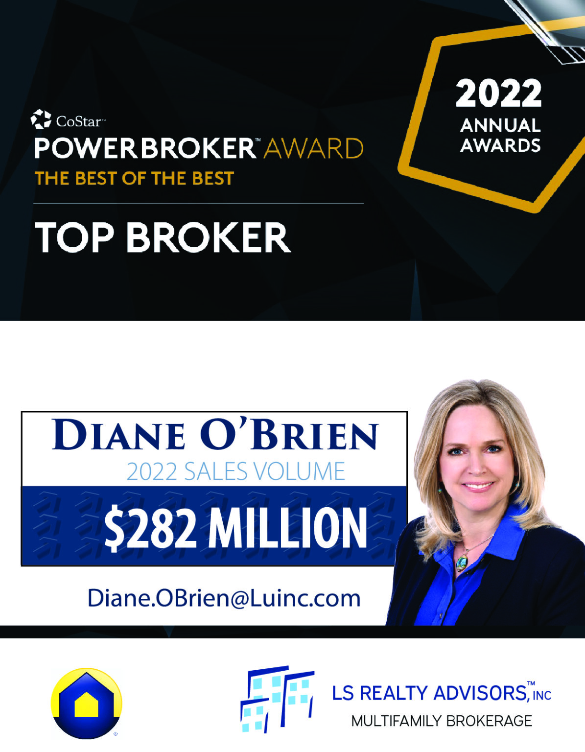 Congratulations to Diane O’Brien Named CoStar Power Broker “Best of the Best” 2022 Top Broker! 👏👏👏 Click Link to view newsletter. Visit our website: https://lifestylesrealtyinc.com